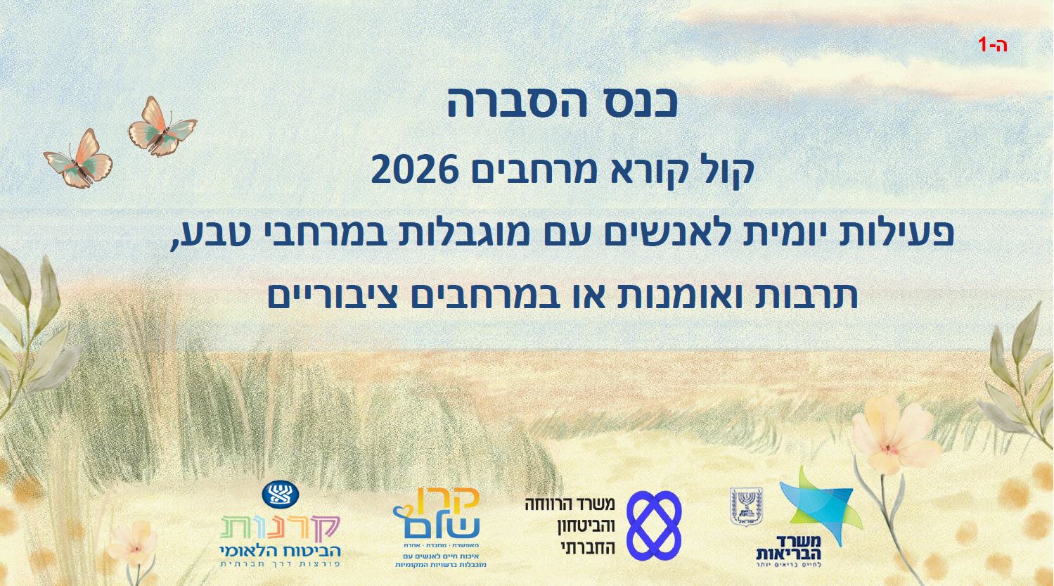 בתאריך ה- 20.11.25 נערך מפגש מקוון להצגת הקול הקורא המשותף לקרן שלם ולקרן לפיתוח שירותים לנכים בביטוח לאומי לקבלת מענק מרחבים